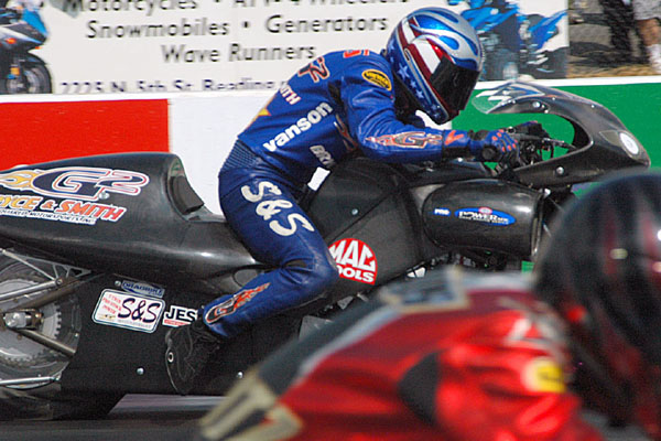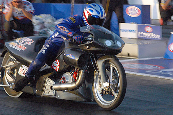 | Chip Ellis held the lead for the pole in Pro Stock Bike. |