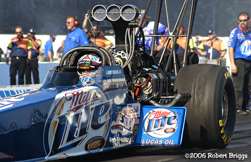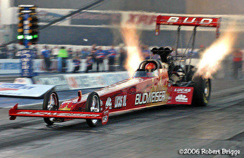 | T/F Rod Fuller's 4.581 sec 327.90 qualified in the 5th position. Rod lost a tight Round 2 race to Morgan Lucas. |