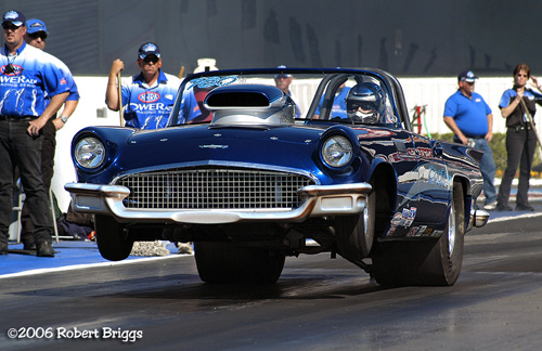 | Super Gas Dave Cook's '57 T-Bird lost in Round 2. |