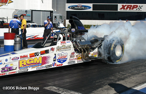 | Reigning F/C champ Gary Scelzi qualified #3 with a 4.713 sec 330.23. #11 qualifier Bob Gilbertson beat Gary in Round 2. |