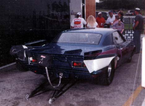 | Kenny Duke raced a few events in the TQ8A with this Camaro bought from Mary Neely. Duke ran a 4.89, 142 with this car. He now races with the Outlaw Top Sportsmen. |