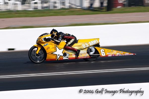 I just found your site and wanted to submit some pics from the 2004 Spring Nationals. These are from about half track, a little different view than most. I also am the official photographer of the Texas Shootout Drag Bike Series and would be happy to submit a few from that if your interested. You can see some here: