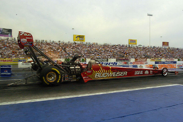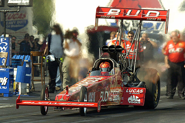 | Allen Johnson blasts to the top of the Pro Stock ladder. |
