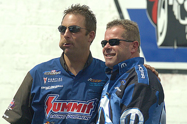 | Greg Anderson and Allen Johnson wait for the next qualifying session. |