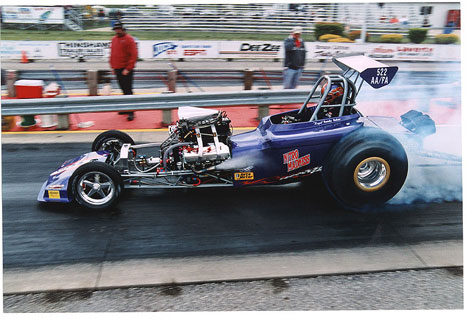 I left first and was on a pretty good run, when I hit some oil or something. The car went sideways instantly and I had to lift. (I know, don't tell anybody an AA/FA driver lifted!) When I was able to get back into it, Randy Jens beat me across the line by a car length or so.