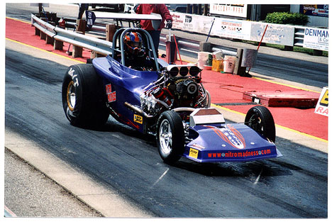 We were racing a Nitro powered Rear Engine Dragster owned by Randy Jens. Randy, his wife and crew were great people to hang out with. They have raced there quite often, so they were a big help with track info and getting everything in place.