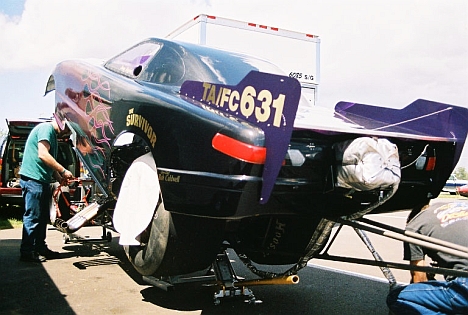 The team's primary objective for the weekend was to make a few launches, acquire data from the computer and get back into a routine. The first couple of passes were nothing special, as the crew worked the bugs out of the combination. But by Sunday afternoon they had it together enough to lay down a three quarter track pass of 6.407 -- not quite a career best ET but good enough to qualify ahead of 3 other TAFCs in the field. And though he had not been booked in at the event, the track cut him a check for his efforts. Hosford was back from the dead.