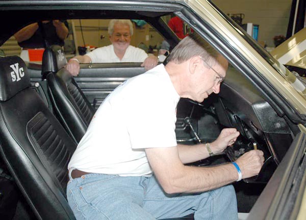 | Ed Hedrick signs Cliff Ernst’s SS&DI Yenko Camaro test car. |