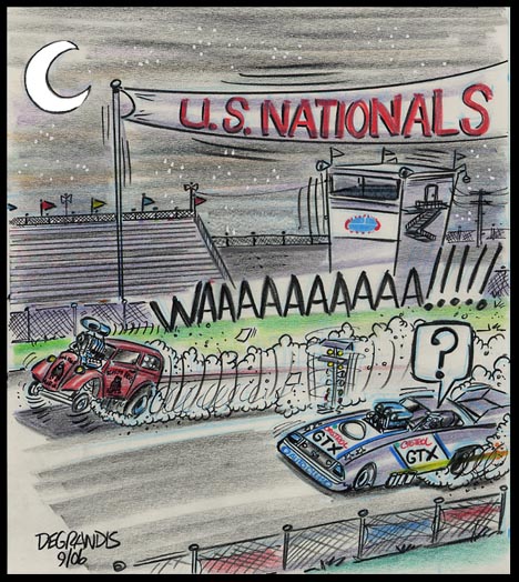 As I read the story, I wished I were good enough to create and print a comic book around the various overly charged scenes! I was able to get genius Jeff DeGrandis to do a cartoon panel for the story, and it came out great. If anybody wants a caricature-style piece done of their racecar, there probably isn't anybody better to do one. As an example, I paid Jeff to do a birthday present for Jack Coonrod recently.