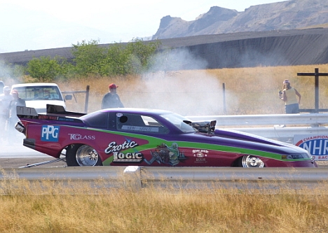 All four North West Funny cars began the weekend with a display in downtown Anaconda, whee every Friday they have a car show, live music, and food vendors. There was a large crowd and many people said they'd never been to the track but might attend Saturday's race. And hopefully they did, because there was a lot of good hard, side-by-side racing with almost no attrition, but more than a few clouds of smoke in that big, blue sky.
