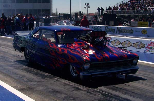 | Shane Gray made the debut appearance in his father Johnny Gray's new Chevy II. The Don Ness built Chevy has a Reher Morrison built 728 Chevrolet for power. Gray ran a best of 4.66 160.44. |