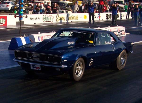 | Famous Limited Street racer Chad Revia made his ADRL debut also at Baytown. The Ballistic Race Cars built 67 Camaro ran a great 4.845 159.17 on true 10.5 tires in the first round going down in defeat to Cory Wheat. |