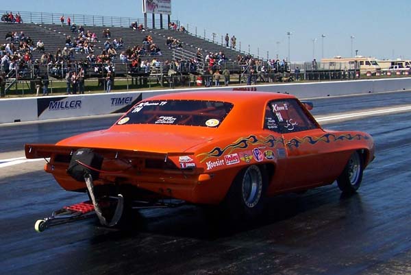 | Tim Savell made his Extreme 10.5 debut at Baytown in this Doug Holt built Outlaw 10.5 69 Camaro. Savell had problems running only a 5.142 136.87 best. The 632 cid Chevy Camaro broke on the run. The team plans to build a true Extreme 10.5 Corvette this year. |