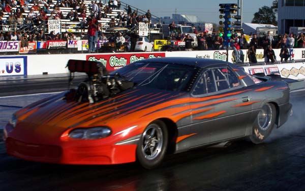 | This shot here says it all for Frankie Taylor Extreme 10.5 debut in Wayne Long's Baytown based River Rat Camaro. The team had traction problems and could only run a best of 5.236 155.25. |