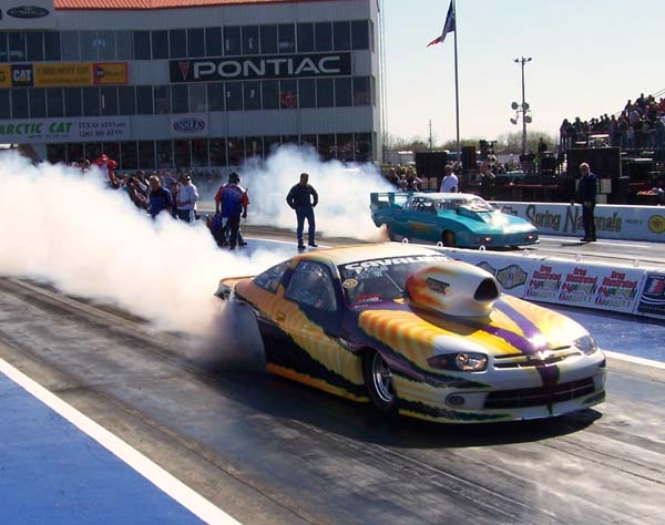 | Mike Hill ran a 4.24 on a test set of 10.5 tires at Carolina Dragway winning a race there. The popular racer could not match that performance at Baytown. Hill fell to Michele Wilson in a close race 4.383 169.09 to Wilson's better 4.369. |