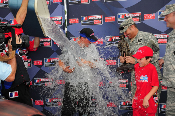 | Travis Swearingen experienced a traditional winner's bath after earning