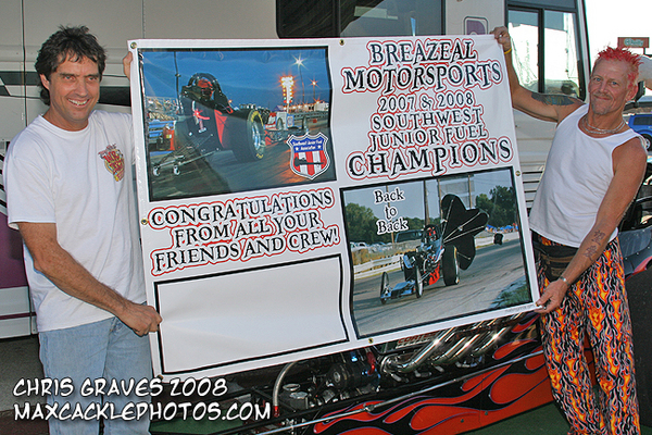 defended his 2007 Championship brought it home again this year and that puts a wrap on the 2008 Smiley’s Southwest Junior Fuel Association season. Congratulations to each and every team who participated in this year’s fun and next year is expected to bring handful of new faces and hot rods to the series. For more information and to see photos from this event visit www.swjfa.com .