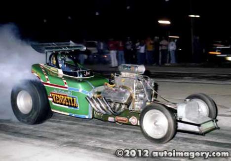 Notes: 1974 photo of the car. Saw scan of time slip from NHRA Indianapolis 9/73 that shows the car went 6.967/220.58. |