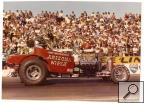 Notes: In '73, a friend had purchased the Magnificent 7 Fuel Altered so I borrowed it and went to the Fuel Altered Nats in Tucson. Qualified fifth with a 7.98 and went four rounds in double eliminations. AA/FA Nationals, Tucson AZ 9/02/73 |