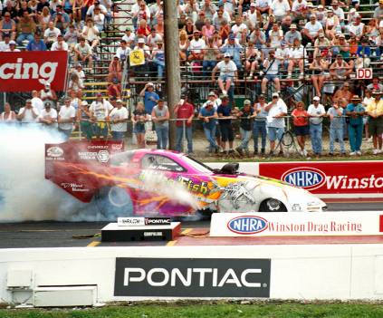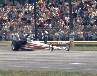 Peter Russo took the AHRA World Championship back to Australia. Note body damage behind rear wheel. Photo by David Hapgood