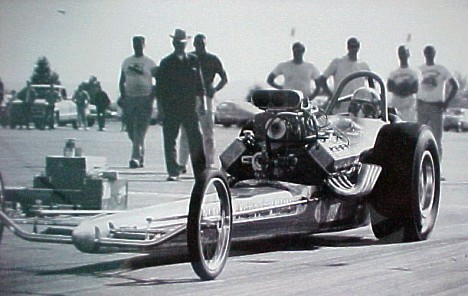 Pat Foster in the Dusty Rhodes dragster by Paul Hutchens
