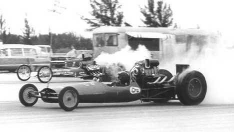 Grumpy's original Vega had these unique headers that exited the sides. Photo courtesy of the Flyin' Phil Archives