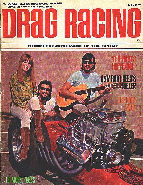 May 1967 Drag Racing Magazine Cover featuring the Bandel Bros. and friend. Photo by Don Prieto