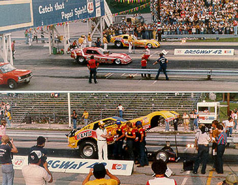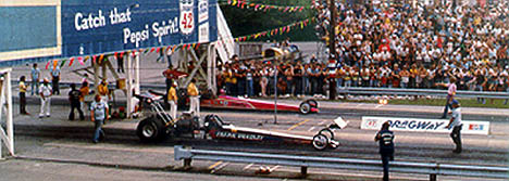 AHRA 1981 - The Top Fuel final featured Frank Bradley vs. Shirley Muldowney. Photo by Rick Howard