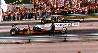 A common sight in Division 1 Top Fuel races -- the Hemi Hunter hooked up and moving and its opponent up in smoke. Photo from the Hemi Hunter archives
