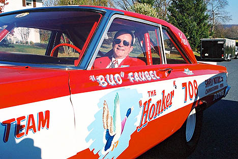 Bud Faubel sits behind the wheel of his car, the 'Honker.' Photo by Greg Gage