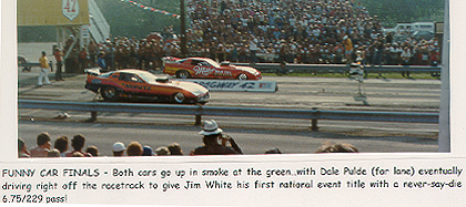 Funny Car final from 1984 ADRA Grandnationals gave Jim White his first national event win. photo by Rickie Howard