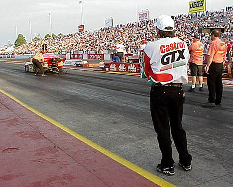 John Force checks out the Pro Mod action at Gainesville. Photo by Brian Wood