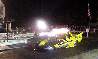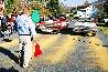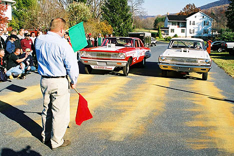 Recreating the days of factory experimental stock cars and a flag man. Photo by Greg Gage