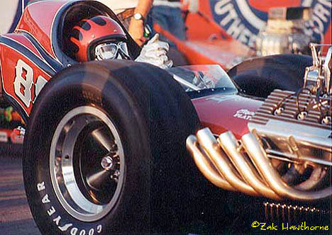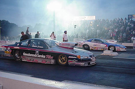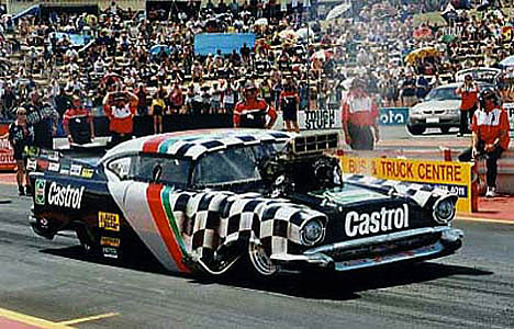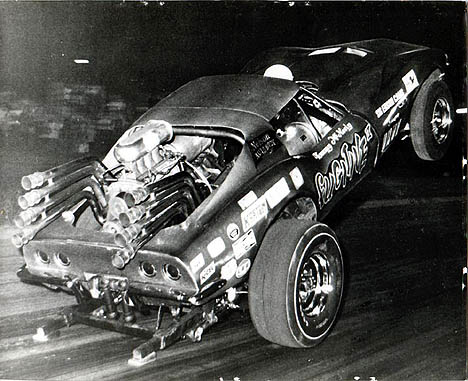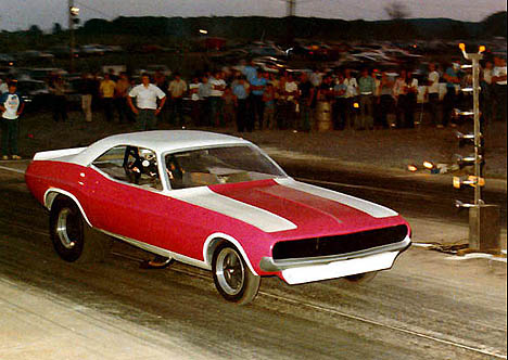 Tony and Diane's Challenger Funny Car with former owner Ron Walsh at the wheel. Photographer unknown