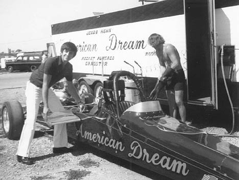 Vern Anderson installs the canard wings on the American Dream rocket dragster in 1973. Photo thanks to Ron Johnson
