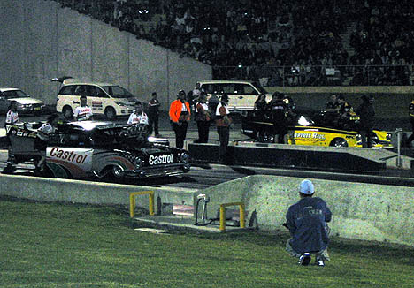 WOW - Jason and Emily Pratt put the squeeze on two time IHRA Top Fuel World Champion Paul Romine. Photo by TIm Pratt
