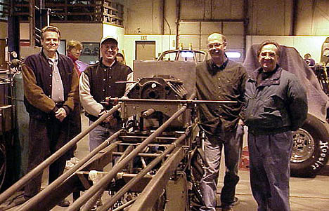Carl Riegger, Kent Lewis, Dale Thierer, and Gary Peters at S&W Race Cars witness the birth of the new Hemi Hunter. HH Photo