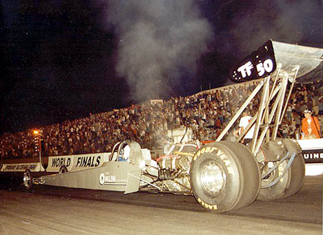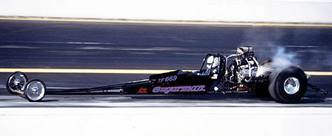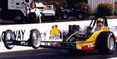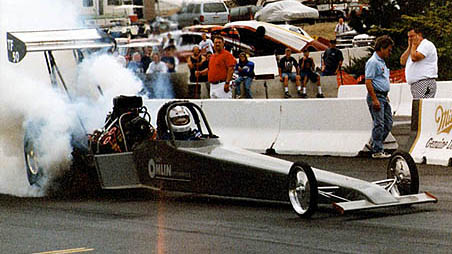 Gary Omlin's current rear engine car at the AHRA World Finals