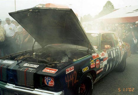 The Big Bang Oldsmobile exploded in flames after going wide open for a few minutes. Photo by Berserko Bob