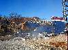 The bulldozer delivers the final blow that takes her down. Photo by Stephen Jones