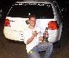 Steve Reyes thanked all the fireball-producing drivers for making his time on dragstrip sidelines entertaining. Photo by Phil Elliott