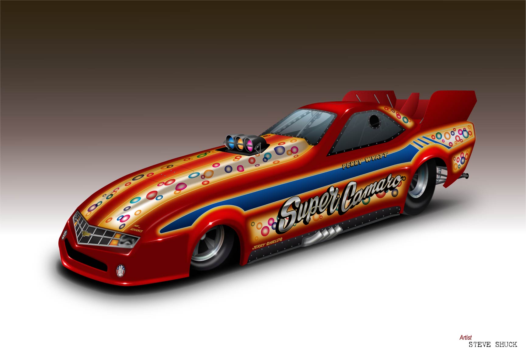Well, it's been 40 years since the Summer of "Super Camaro" ! The Summer that the Ramchargers became the first 6 second funny car, the Summer that Dwane Ong won the first national event in a rear engine top fuel dragster, just the year before we had landed on the moon, Apollo 11 launched the same day my baby sister was born, "Woodstock" happened ! and "Super Camaro" was under construction. I'll always remember that Summer of 1969 ! Forty years ago, the "Super Camaro" ran Detroit Dragway, Motor City Dragway, Milan and Kansas City, Missouri, where it made it's only full track pass, 7:83@200.89 mph !.............I am so desperate for any photos or memories that anyone may have, I have been on an Internet quest since the year 2000 and in that time I have found Two photographs and one for sale ad, had a model built and met a "million" wonderful people, including all of you ! ........the legacy of the "Super Camaro" will always live with me and I hope my son and someday grandson, but for now, please keep me in your mind and know that someone truly appreciates your thoughts !!!......................Thank You All.......Perry S. Wyatt Jr.