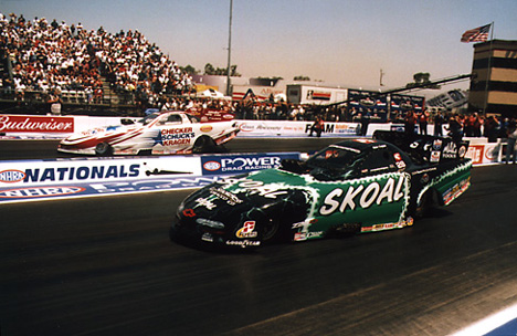the Snake's Skoal Camaro with a 4.956, 202.45 mph. This race could