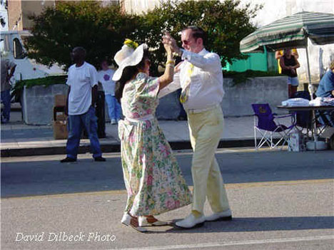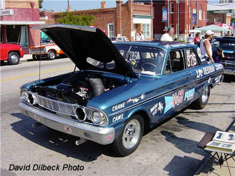 Some of the drag cars that were on display included the “Little Georgia Shaker” 1964 Ford Thunderbolt that was campaigned by Hubert Platt and later driven by Lee Malkemes, “The Virginian” altered wheelbase car originally driven by Pee Wee Wallace and the “Candymatic” Dodge (these two cars are owned by Rick DeMarco), Ronnie Sox's 1965 Plymouth Paper Tiger replica, the 1963 lightweight Bob Ford car (owned by Marco DeCesaris), the Chevy powered “Hemi Hunter” Top Fueler, a Hemi powered Nostalgia Top Fueler, Shirl Greer's “Chained Lightning” Mustang II funny car, and several current drag cars. I had the opportunity to meet several of the drivers/owners and had a great time checking out all the cars. Check out the photo of Mr. and Mrs. Bud Faubel dancing in the street as one of the bands played!