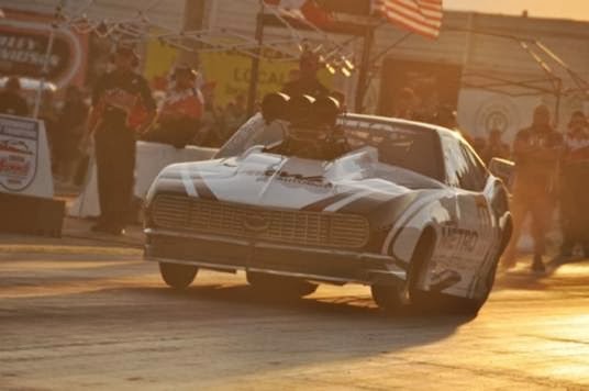 In AMSOIL Prostalgia Nitro Funny Car Peter Gallen (Broomall, Pa.) showed why he is the record holder and best-in-class with a very quick 5.858, 231.64 pass, barely holding down the top spot in the “Poverty Stricken” Monza over Mike Minick who drove the new bodied “Chi-Town Hustler” Omni to a 5.929, 233.88.