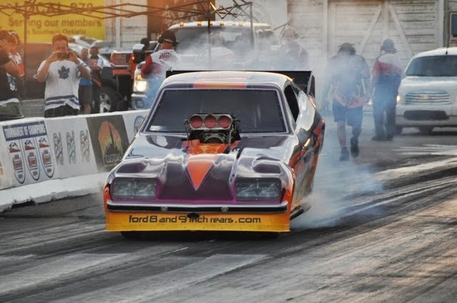 Wrapping up the evening was an exhibition pass of Mountain Motor Pro Stocks running the IHRA quarter-mile for the first time since 2009 as Canadian John Konigshofer led the way with a 6.440, 219.01 in his first quarter-mile pass in his brand new Mustang-bodied machine.