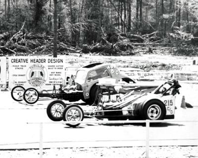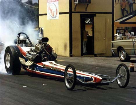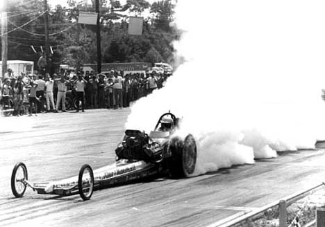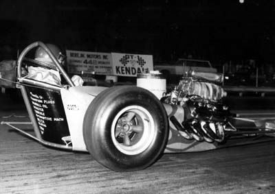 | In 1968 New England Dragway also operated an 1/8-mile track in Norwood, Mass that raced every Friday night. On occasion Doyle and Roberts would put alcohol in the tank of the "Slider" and run with the top fuel cars and qualify and go a couple of rounds. Running alcohol on the 1/8 mile Roberts drove the car to a 4.99 best at 163 mph. |