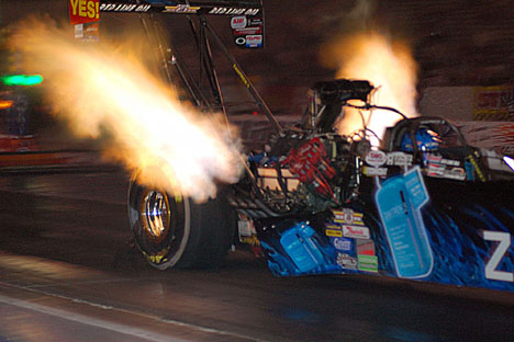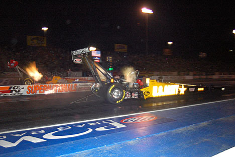 | Tony Schumacher and Scott Weis launching in the dark. |