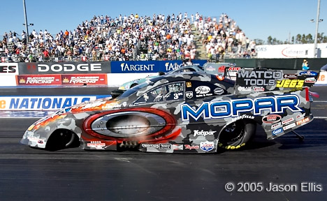 | John Force was taken out in round one of eliminations by Ron Capps. |