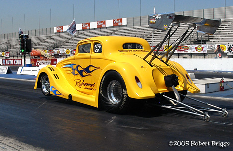 | The beautiful '33 Willys of John Woods qualified #6 for C/Gas with a 9.664 on the 9.60 Index. |